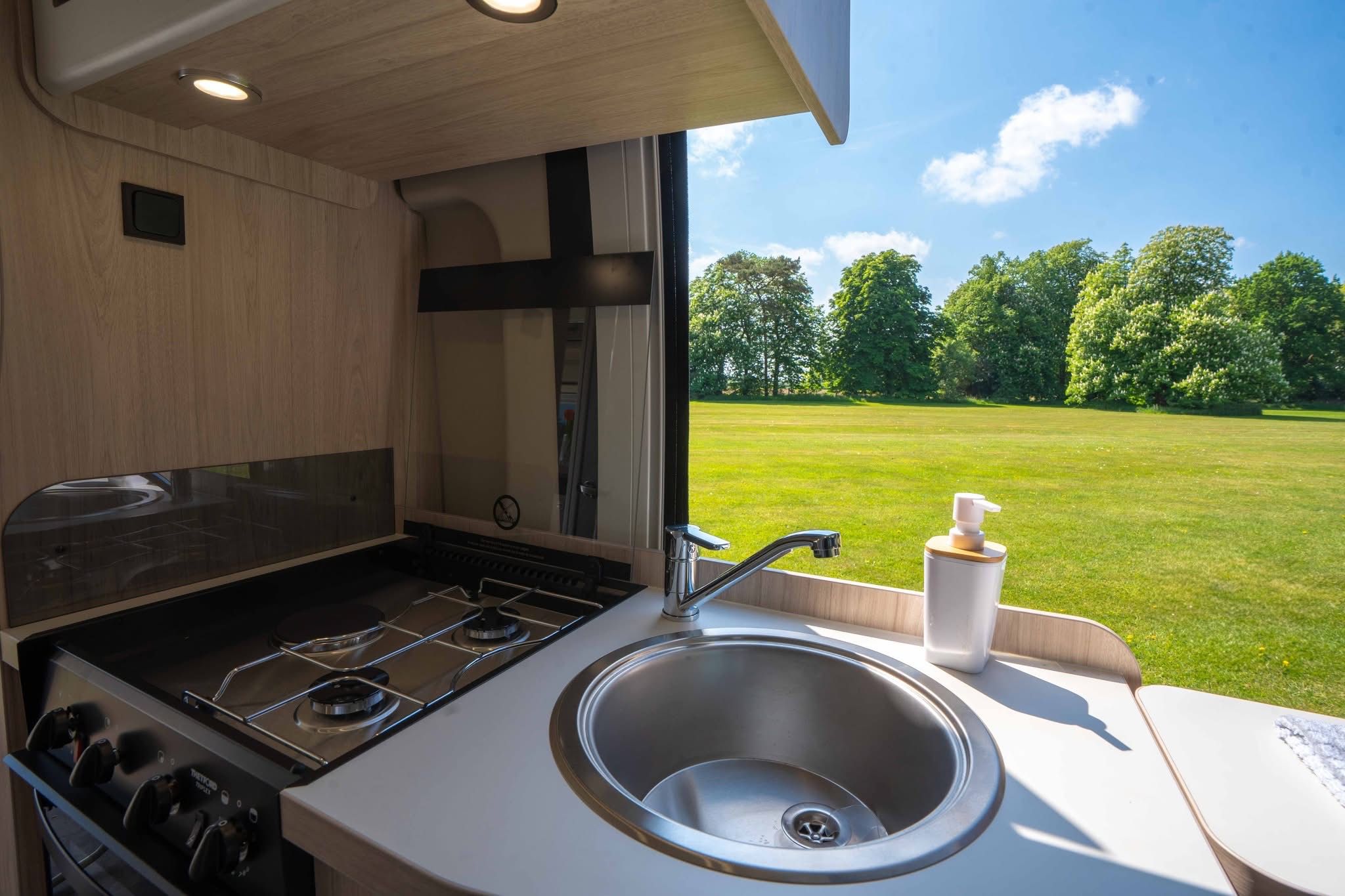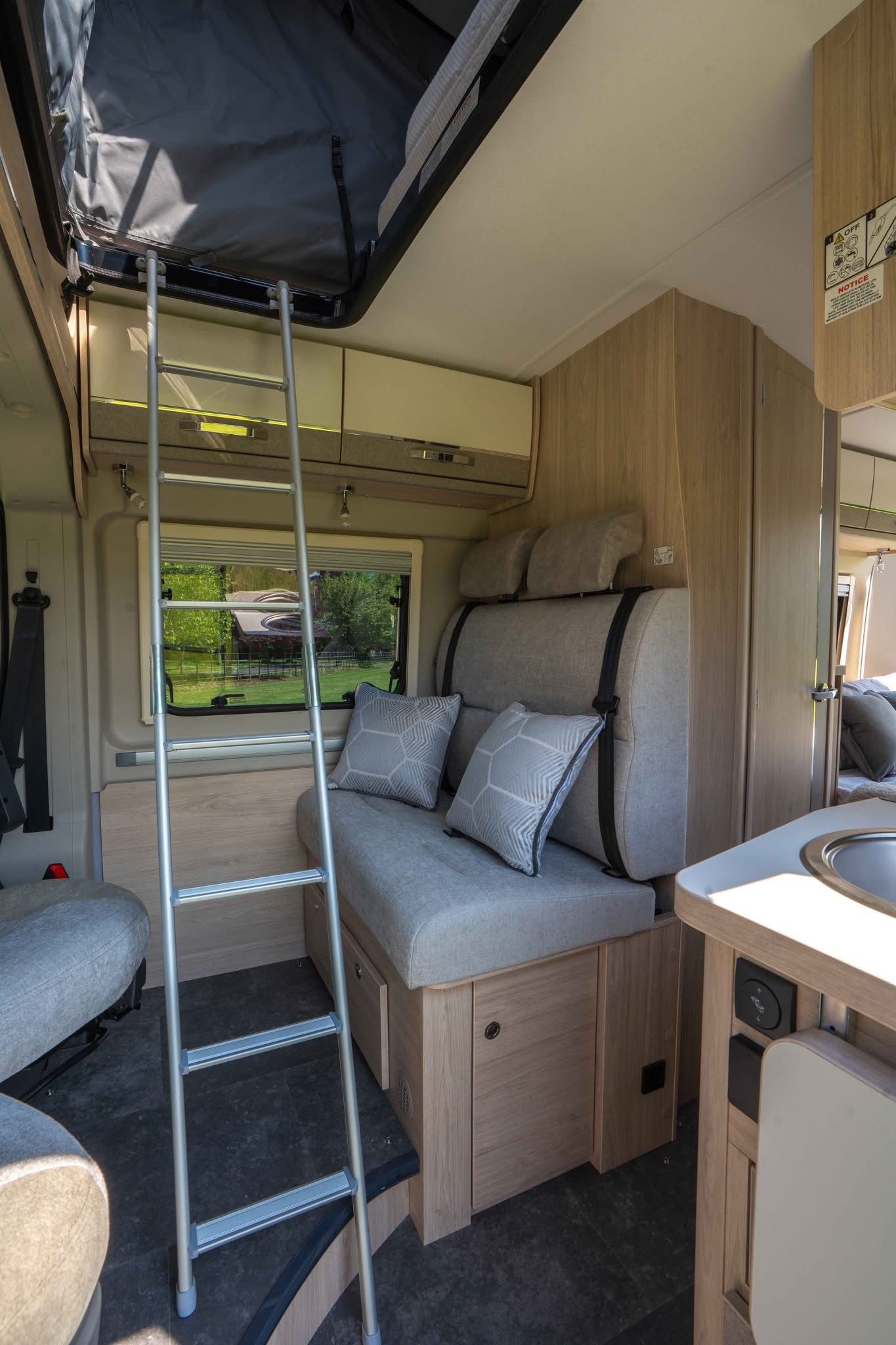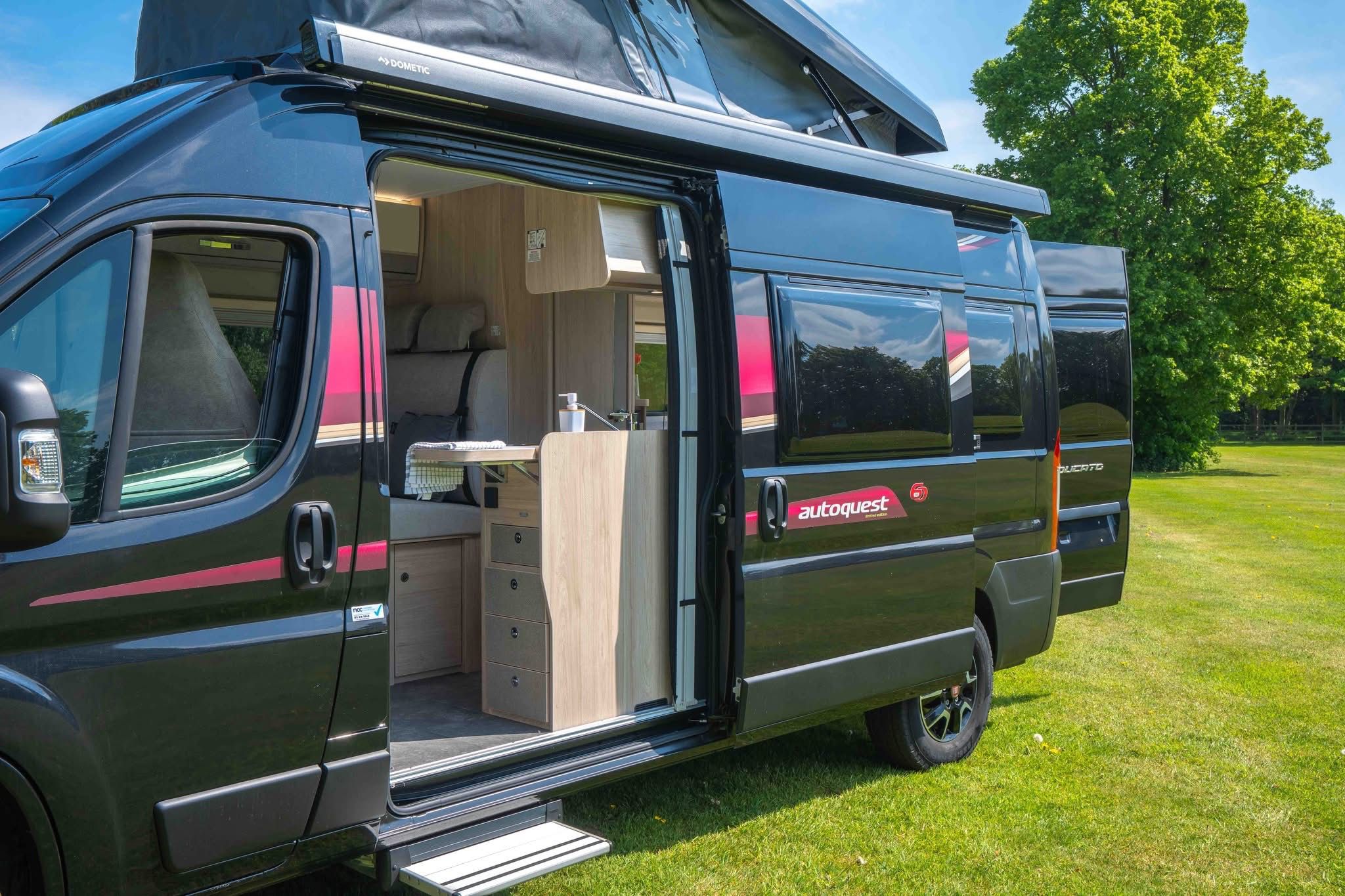 The Autoquest CV80 is a compact (under 6m) 4-berth campervan from Elddis, built on a Fiat Ducato chassis, known for its flexible layout featuring a front Pullman lounge, rear lounge (convertible to a double bed), and a pop-top roof with a second double bed, offering a functional kitchen, with pots, pans utensils & crockery, washroom, and modern tech like a reversing camera Ideal For: Active couples or families. Those wanting a compact van with the space of a larger camper. Exploring with the freedom of modern amenities.